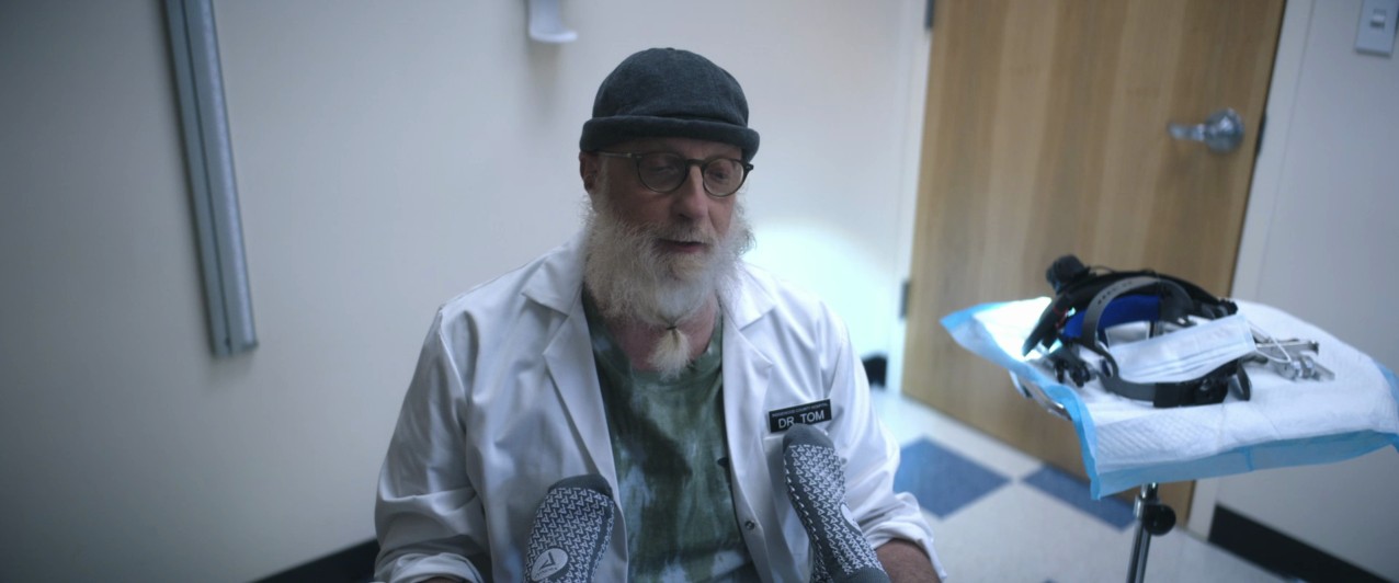 Tom breaking the Fourth Wall, playing a banjo just as miserably, but not enough to sing a Christmas song to the audience. 'Christmas vs.